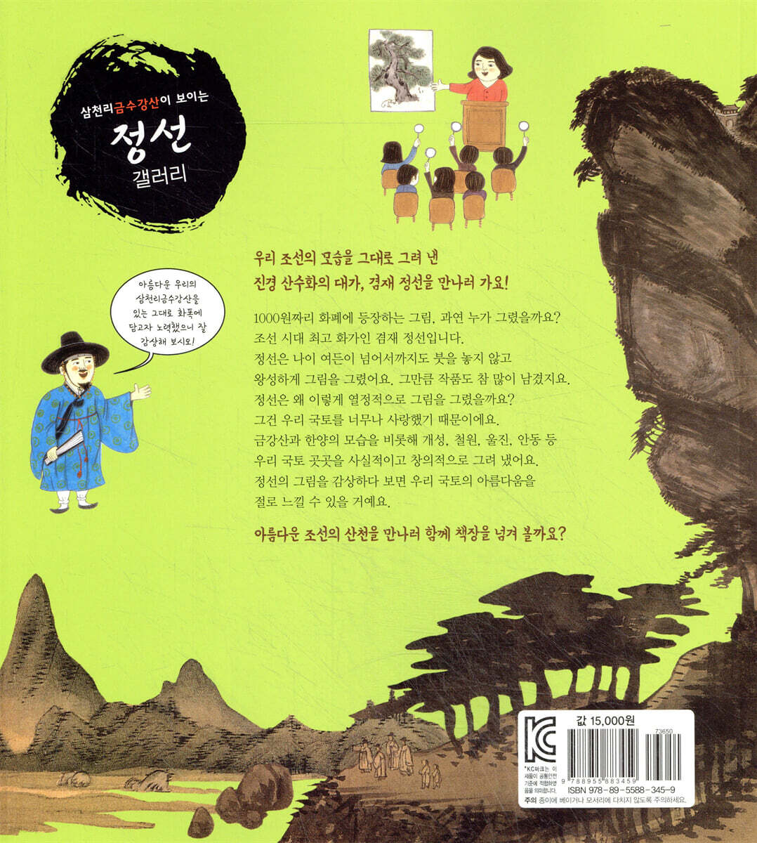 조선 시대에 많은 사람들은 중국을 세상의 중심으로 여겼습니다. 그렇기에 우리의 산천을 산수화로 표현한다는 것은 매우 획기적이고 자주적인 행동이었다는 말이지요. 정선은 조선 시대 진경 산수화를 개척해 조선 산수화를 한 단계 끌어올리는 데 빛나는 공을 세웠습니다. 우리의 국토를 직접 둘러보고 우리의 생각과 우리의 시선으로 국토를 그린 것이지요. 경북 울진에 있는 유명한 석회암 동굴을 그린 정선의 성류굴을 함께 살펴볼까요? 정선은 성류굴의 외부를 웅장하고 하늘로 솟구쳐 오른 바위탑 같이 그렸습니다. 정선은 왜 이렇게 성류굴을 과장해 그렸을까요? 그건 성류굴의 역사와 당당함을 좀 더 극적으로 드러내기 위해서였습니다. 그래서 성류굴 표현은 과감하고 대담합니다. 정선은 이렇게 우리 땅의 특징과 의미를 쉽고 두드러지게 묘사하기 위해 늘 고민하고 새로운 시도를 했던 사람입니다. 그러한 시도는 자신감의 표출이라고 할 수 있어요. 그것은 우리 국토에 대한 자부심이자 자신의 그림에 대한 자부심의 표현이기도 하지요. 그렇기에 정선의 진경 산수화는 후대의 화가들에게 지대한 영향을 미쳤습니다. 우리 땅과 우리 산수화를 보는 관점을 바꿔 준 것은 물론이고 정선의 화풍을 따라 하는 화가들이 무척 많이 생겼답니다. 정선의 그림과 비슷한 산수화들이 많이 제작되었다는 말이지요. 정선 화풍이라는 말이 생겨난 것도 이런 까닭이랍니다. 시간이 흘러도 변함없이 사랑 받는 정선의 그림! 조선 시대 정선의 집 앞에는 정선의 그림을 구하려는 사람들이 줄을 이었다고 합니다. 정선의 그림을 원하는 사람들이 많다 보니 정선 또한 부지런히 많은 그림을 그려야 했지요. 어찌나 그림을 많이 그렸는지, 정선이 사용해 뭉툭해진 붓을 모아 놓으니 그 양이 무덤을 이룰 만큼 많았다는 얘기까지 전해 올 정도입니다. 현재 겸재 정선의 그림 중 두 점이 국보로 지정되었습니다. 바로 금강전도와 인왕제색이라는 그림입니다. 또한 1000원짜리 지폐의 뒷면에 그려져 있는 그림 한 점이 정선의 그림이라는 것을 알고 있었나요? 그림에는 경치 좋은 계곡에 집이 한 채 있고 자세히 보면 거기 선비 한 사람이 앉아 책을 보고 있는 모습이 담겨 있습니다. 이 그림은 계상정거입니다. 이렇게 시간이 흘러도 예나 지금이나 정선의 그림은 사랑 받고 있답니다. 도슨트에게 정선의 작품 설명을 듣고 있는 듯한 생생함! 오랫동안 우리의 문화유산을 누비며 문화재 관련 기사를 써 온 이광표 문화재 전문 기자가 쉽게 풀어서 정선의 그림 세계에 대해 이야기해 주고 있습니다. 정선은 진경 산수화 뿐만 아니라 수목과 초화도 그렸습니다. 우리 땅을 좋아하니 거기서 자라는 수목과 초화를 좋아하는 것은 어쩌면 당연한 일이겠지요. 그중 사직송은 한양 사직단에 있는 노송을 표현한 그림이에요. 나무의 줄기와 가지의 굴곡이 심한 이러한 소나무를 정선은 왜 그렸을까요? 1728년 이인좌의 난이 일어나 열흘 만에 난이 평정되었는데 정선은 조선의 안정과 번영을 기원하는 마음으로 이 소나무를 그렸다고 합니다. 오랜 세월 온갖 시련을 이겨 낸 저 소나무처럼 조선 왕조도 시련을 딛고 영원하길 바라는 마음을 이 소나무에 담아 표현한 것이지요. 이처럼 정선의 그림 해설과 함께 그림과 연관된 역사적 배경지식은 정선의 그림을 더욱 깊이 있게 감상할 수 있습니다. 조선 시대 산천 풍경과 현재의 모습 비교 감상해 보기! 《정선 갤러리》에서는 정선이 담아낸 조선 시대의 우리 산천 풍경과 현재 우리 산천 풍경이 어떻게 변했는지 비교하면서 감상해 볼 수 있도록 구성했습니다. 잠실 하면 석촌호수, 롯데월드가 떠오르지만 사실 조선 시대에 이곳은 남한산이 시원하게 펼쳐져 있고 그 앞으로 한강물이 넉넉하면서도 여유롭게 흘러갔답니다. 정선의 송파진 그림을 보면 한강에 나룻배 한 척이 유유히 떠가고 있는 지금과는 전혀 다른 잠실 일대의 모습을 비교해 볼 수 있습니다. 그리고 서울 인왕산의 옛 모습 복원에 정선이 큰 역할을 했다는 사실을 알고 있나요? 인왕산으로 쭉 올라가면 수성동 계곡이 나오는데 이 주변에는 한때 5층짜리 아파트가 들어서면서 정선이 살았던 조선 시대 모습은 모두 사라졌습니다. 그러나 원래 모습으로 되살려야 한다는 여론에 따라 정선의 수성동 그림을 참고해 2012년 옛 모습으로 복원해 공원으로 꾸몄습니다. 그 후 이곳은 인왕산 일대의 명소로 인기를 끌고 있답니다. 이처럼 우리 국토의 모습을 담아낸 정선의 그림 이야기를 읽다 보면 서울의 구석구석은 물론 금강산까지 여행하고 온 듯한 느낌을 받을 수 있답니다. |