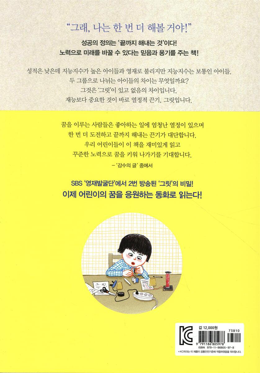 세계적인 베스트셀러 『그릿』이 어린이를 위한 동화로 나왔다. 금방 싫증 내고 포기도 잘하는 요즘 아이들에게 원하는 것을 얻기 위한 꾸준한 노력의 힘이 중요하다는 것을 알려준다. 실패하더라도 다시 도전하는 친구들의 이야기를 통해 끈기의 힘 ‘그릿’을 배운다.