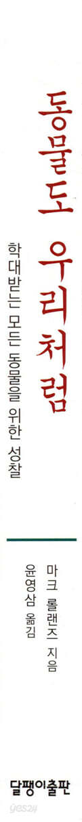 머리말 1. 동물에게 마음이 있는가? 동물은 아픔을 느낄까|그 밖의 불쾌한 감정|유쾌한 감정도 느낄까|인간과 동물이 고통을 느끼는 방식의 차이|욕망과 선호|믿음|자율성|요약 2. 도덕적 주체들의 모임 도덕모임의 회원자격|도덕논증: 선禪적인 접근|평등하다는 말의 진정한 의미|평등원칙이 중요한 이유|도덕원칙의 적용|‘인간’은 도덕적으로 적절한 기준일까|외모는 도덕적으로 적절한 기준일까|지능은 도덕적으로 적절한 기준일까|한계상황논증|잠재적 가능성은 도덕적으로 적절한 기준일까|응보원칙|동물이 갖는 마땅한 권리|동물에 대한 정당한 대우|요약 3. 만물을 위한 정의 본래자리- 정의로운 세계로 들어서기|공평한 자리- 평등과 응보의 세계로 들어서기|종의 배제|도덕적 능동인과 도덕적 피동인|공평한 자리는 가능한가|합리성의 투쟁- 이상으로서의 공평한 자리|요약 4. 삶과 죽음의 가치 구명보트에 올라타기|죽음은 우리를 해치지 않는다!|죽음은 삶을 박탈한다| 미래를 잃다|미래의 개념적 상상과 몰개념적 상상|미래의 박탈과 죽음의 해악|미래의 길이와 질|구명보트로 돌아와서|혼란- 잃어버린 삶의 길이|일반적인 오류|구명보트 위의 공평성|요약 5. 음식으로 먹기 위한 동물사육 닭|돼지|소|공장식 축산업과 공평한 자리|동물을 도축하는 방법|고통 없이 죽이는 방법|가축의 멸종|인간 덕분에 태어난 동물들|경제에 미칠 큰 재앙|요약 6. 동물실험 절실한 관심과 절실하지 않은 관심|생체실험은 인간의 절실한 관심 에 부합하는가|인간을 오히려 위협하는 생체실험|생체실험을 대체할 수 있는 실험들|생체실험이라는 신화|정당성이 없는 생체실험|인간의 절실한 관심에 기여하는 생체실험|요약 7. 동물원 동물원과 공평한 자리|동물의 처지에서 본 동물원|인간의 처지에서 본 동물원|공평한 자리에서 본 동물원|요약 8. 사냥 사냥이 정당한 경우|동물의 사냥과 인간의 사냥|‘인간에게 해가 되는 동물’을 없애기 위한 사냥|생태계 보존을 위한 사냥|요약 9. 애완동물 자연의무와 획득의무|애완동물에 대해 우리가 획득한 의무|애완동물과 채식주의|요약 10. 동물권운동 동물권운동의 종류|적극적 의무와 소극적 의무|시민불복종|구출투쟁과 사회변화운동|동물권운동의 정당한 실천방식|요약 11. 동물착취와 자기파멸 암흑세계의 변증법|대규모 농장의 등장|전통 축산업의 몰락|먹거리의 위기|환경파괴|동물에게 더욱 혹독한 고통으로|게슈텔 속 정책결정- 광우병의 경우|우리는 무엇을 깨우쳤는가|하찮은 소모품인 인간 후주 옮긴이 말 |