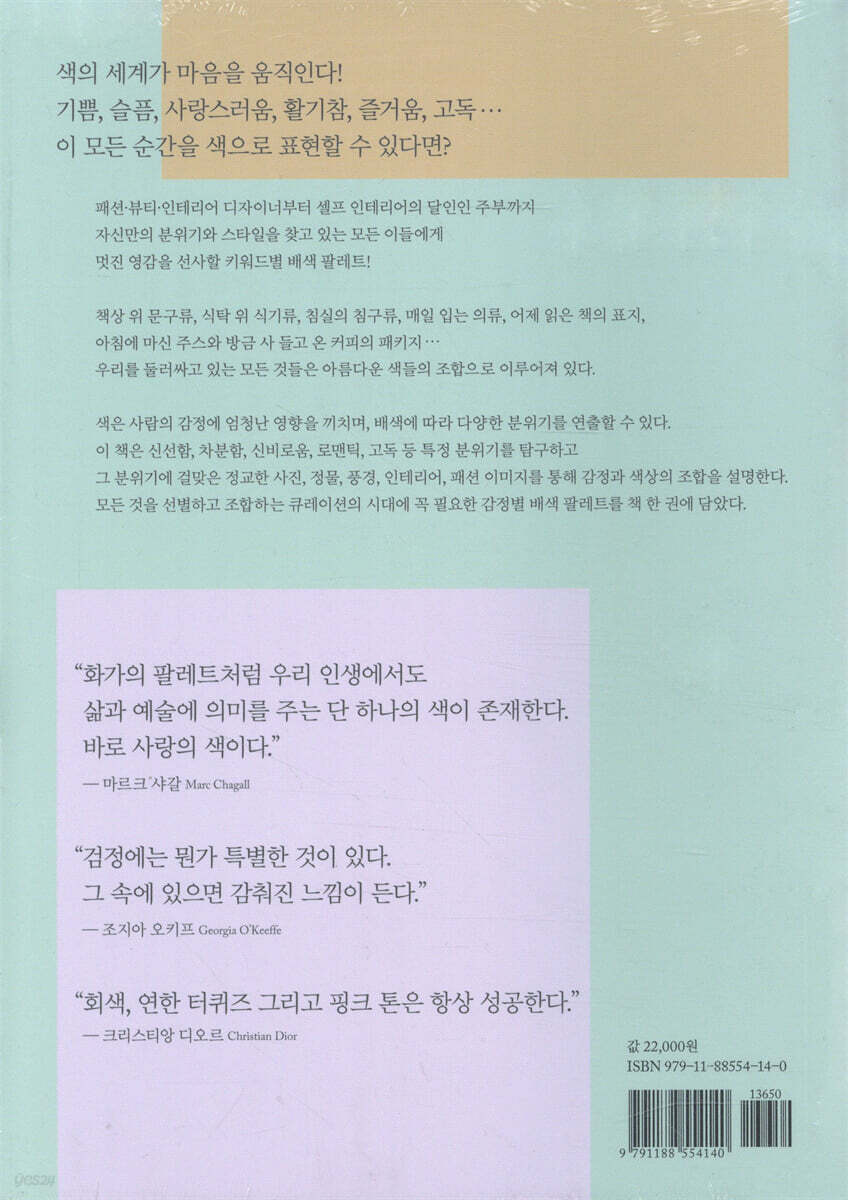 누구나 색을 선별하고 조합할 수 있는 풍요로운 색의 시대, 마음을 움직이고 세상과 소통하는 색의 세계로! 우리 주변을 감싸고 있는 모든 색들을 살펴보자. 푸른 하늘, 초록 숲, 색색의 번쩍이는 간판들, 집 안의 낡은 가구와 잡동사니, 그리고 사람들의 알록달록한 옷에 이르기까지 주변의 모든 사물과 대상들은 나름의 색을 표출하고 있다. 그렇다면 매일 보는 다채로운 색깔들이 사실 우리의 기분과 감정, 행동에 얼마나 많은 영향을 주는지 알고 있는가? 색채 연구가이기도 했던 독일의 대문호 괴테는 사람의 기질을 12가지의 색으로 분류하며 개인의 성격과 색 사이의 유사성에 대해 연구해왔다. 특히 그는 “색을 과학적으로 관리하지 않는 것은 어린아이가 악보 없이 악기를 연주하는 것과 같다”라며 색이 갖는 힘과 영향력에 주목한 바 있다. 풍요로운 색의 시대, 200년 전 괴테의 말은 더 강력한 힘을 얻었다. 기업은 치열한 경쟁 속에서 소비자의 마음을 살 색을 찾고, 정당은 유권자의 표심을 잡을 색을 찾으며, 개인은 이성이나 면접관에게 호감을 살 색을 찾는다. 색은 시선을 움직이고 시각을 바꾼다. 감정을 일으키고 세상에 영향을 미친다. 《배색 스타일 핸드북》은 이처럼 마음을 움직이고 기분을 결정하는, 보이지 않는 힘을 지닌 색의 신비에 더 가까이 다가갈 수 있게 한다. 밝은색, 어두운색, 중간색 혹은 무채색…. 사람은 색을 보면서 그 순간에 바로 그 차이를 인식한다. 그리고 그 색으로 인해 편안함, 고독감, 호기심, 긴장감, 스트레스를 느끼는 등 감정이 움직이기도 하며 다양한 이미지나 장면을 떠올리기도 한다. 우리가 색을 보고 심리적 변화를 느끼는 대표적인 예가 따뜻한 색warm colors과 차가운 색cool colors이다. 빨강과 노랑으로 대표되는 따뜻한 색과 초록과 파랑으로 대표되는 차가운 색을 볼 때 느끼는 심리적 온도차가 3˚C가 된다는 연구 결과가 보여주듯이 색의 심리 효과를 고려해 색의 이미지를 적절하게 활용하면 감정을 다스리고, 기분 좋은 공간을 만들며, 풍요로운 일상을 꾸리는 데 도움이 될 것이다. “모든 것이 고요하고 모든 것이 완벽한 순간. 파란색은 마음을 진정시킨다. 부드러운 파랑은 마음을 차분하고 침착하게 해주는 반면, 강렬한 파랑은 생각을 맑게 한다. 분홍은 위로와 온기를 주어 마음의 중심을 잡는 데 도움을 주며, 초록은 마음을 평온하게 하는 색으로 조화, 회복, 성장의 이미지를 연상시킨다. 고요한 느낌의 컬러 팔레트를 구성하려면 모두 밝고 부드러운 색으로 채우면 되지 않을까 생각할 수도 있지만, 파랑이나 초록 계열의 탁하고 진한 색을 추가하면 차분한 느낌이 더해져 팔레트가 훨씬 풍성해진다.” _〈TRANQUILITY 고요의 색〉에서 “색은 그것이 만들어내는 인상만큼이나 강력하다” 화가의 팔레트처럼 나의 삶과 예술에 의미를 주는 나만의 컬러 팔레트! 《배색 스타일 핸드북》은 색이 우리에게 미치는 여러 감정적 효과를 직접 만들어보며 경험할 수 있게 구성되어 있다. 각 장에서는 신선함, 호기심, 차분함, 꿈, 낭만, 신비로움, 고요, 고독, 향수 등 특정 분위기를 탐구하고 그 분위기에 걸맞은 정교한 사진, 정물, 풍경, 인테리어, 패션 이미지를 통해 감정과 색상의 조합을 설명한다. 하양과 검정을 병치하는 디자인을 즐겼던 샤넬의 배색 조합을 소개하고 자연의 향기를 느끼게 하는 화보가 싱그럽게 펼쳐진다. 각 장의 끝에는 주제에 맞는 다양한 컬러 팔레트가 제공되며, 색을 더욱 세심하게 활용할 수 있도록 RGB와 CMYK 값도 수록했다. 전문가뿐만 아니라 뷰티, 패션, 인테리어 등에 관심이 많은 일반 대중까지 배색 감각을 훈련하는 데 손색이 없는 책이다. “어린 시절의 기억과 푸릇한 청춘의 한때를 끄집어 생각하다 보면 기분이 꽤 감상적으로 변하곤 한다. 추억은 때때로 우리의 마음을 향수에 젖게 하고, 과거로부터 단절된 느낌을 주기도 하며, 그리움과 갈망으로 가득 채우기도 한다. 또 한편으로 노스탤지어는 추억이 담긴 기념품이나 익숙했던 물건을 보게 되었을 때 느껴지는 행복하고 긍정적인 감정이기도 하다. 나는 나무로 만든 흔들의자를 볼 때마다 옛날 할머니 댁에 대한 기억으로 즐거워진다…. 향수에 젖게 하는 색은 사람마다 다르다. 내게는 흐린 주황, 머디 브라운, 블루 피콕이나 그린 피콕 같은 색이 따뜻한 감정을 불러오는 향수의 색이다…. 향수에 젖을 때 당신의 마음속에는 어떤 색이 떠오르는가?” _〈NOSTALGIA 향수의 색〉에서 주변 분위기나 감정에 따라 다르게 지각되는 색의 성질에 관한 명쾌하면서도 따뜻한 이야기들을 토대로, 이론보다는 실용성에 무게를 둔 이 책은 전달하고자 하는 분위기 또는 감정을 색으로 표현할 수 있는 여러 방법과 눈으로 본 것을 색으로 분해하는 다양한 방법을 담았다. “비결은 시선에 있다”는 저자의 강조처럼 주변을 관찰하고, 예술과 자연과 사진을 관조하며, 그것을 컬러 팔레트로 옮기다 보면 우리는 색이 얼마나 많은 다채로운 감정들을 표현하고 있는지 배색의 무한한 가능성과 신비로운 색의 조화에 대해 더 잘 이해하게 될 것이다. 그러다 보면 어느새 자신만의 개성이 살아 있는