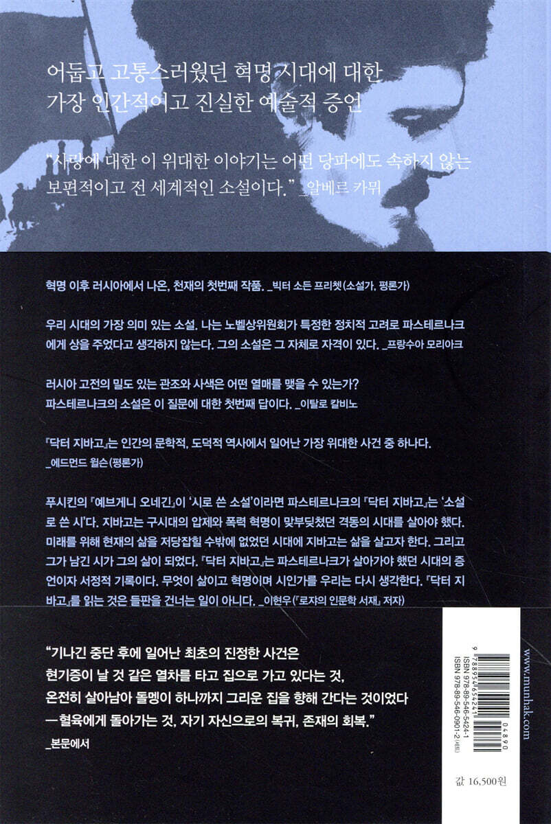 어둡고 고통스러웠던 혁명 시대에 대한 가장 인간적이고 진실한 예술적 증언 혁명과 내전의 폭풍이 휩쓸었던 20세기 초 러시아 민중의 삶을 생의 존엄함에 대한 찬미의 시로 그려낸 파스테르나크의 유일한 장편소설 『닥터 지바고』가 문학동네 세계문학전집으로 출간되었다. 1945년에 집필하기 시작해 십 년 만에 완성한 이 작품은 자국 내 출간 불허로 1957년 이탈리아에서 처음 소개되며 세상에 알려졌고, 파스테르나크는 이듬해인 1958년 “동시대 서정시와 러시아 서사문학의 위대한 전통의 계승에 기여한” 업적으로 이반 부닌에 이어 러시아에서 두번째 노벨문학상 수상자로 선정되었다. 하지만 사회주의혁명을 부정적으로 그렸다는 거센 비판과 추방 압력에 “모국을 떠난다는 것은 나에게 죽음과도 같다”고 밝히며 결국 수상을 거부했다. 그리고 이 년 후 침묵과 고독 속에서 생을 마감했다. 폭력과 부조리에 신음하던 러시아에서 인간적이고 예술적인 삶을 희구했던 지바고의 생애를 통해 당대를 증언하고, 동시대인에 대한 깊은 이해와 함께 위로를 건네는 이 소설은 알베르 카뮈가 이야기했듯 “위대한 사랑이야기이자 전 세계적인 소설”로, “인간의 문학적, 도덕적 역사에서 일어난 가장 위대한 사건 중 하나”로 세기를 뛰어넘어 불멸의 고전으로 자리매김했다. 역사적 사건과 인간 존재의 참담한 간극 삶을 잃어버린 자들에 대한 소환과 애도 『닥터 지바고』가 출간된 뒤 파스테르나크는 소비에트작가연맹에서 제명되는 시련을 겪었고, 작가 생전 모국에서는 출간되지 못하다가 약 삼십 년 후인 1988년에 비로소 출간되었다. 이 소설을 쓰기 전에도 그는 반혁명적 작가라는 꼬리표 때문에 창작활동은 거의 접은 채 번역으로 남은 나날을 잇고 있었다. 『먹구름 속의 쌍둥이』 『방책을 넘어서』 등의 시집을 발표하며 시인으로서 먼저 주목받았던 파스테르나크의 『닥터 지바고』는 냉전시대에 사회주의 체제에 반대하는 선전을 위한 상징적 작품으로 자주 이용되고 거론되었지만, 정작 작가는 결코 그러한 목적으로 이 소설을 쓰지 않았다. 파스테르나크는 정치적인 인물이 아니었다. 그는 체제에 대한 저항으로서가 아니라, 혁명 정부의 냉혹한 검열과 처단으로 사라지거나 죽거나 조국을 떠나간 사람들을 애도하고 그들을 추억하기 위해, 그 혼란 속에서 온전히 살아남은 사람으로서 마음에 진 무거운 빚을 갚기 위해 이 소설을 구상하고 써내려갔다 그리고 그것은 20세기 러시아에서 벌어진 역사적 사건, 소비에트의 들끓었던 역사를 더듬어가는 일이 되었다. 시인의 소설 마지막 17장은 25편의 시로 이루어져 있다. 그는 이 소설을 구상하며 시를 먼저 썼고 나중에 그것을 줄기로 서사를 이어나갔다. 시와 산문의 혼합이라는 독특한 형식을 통해 파스테르나크는 심오한 세계관과 자연주의적 인생관을 드러내는 동시에 사람이 살아가는 데 필요한 것이 무엇인지, 어떻게 살아가야 하는지에 대한 고민과 해답을 그만의 독자적인 방식으로 노래했다. 그는 “어리석게 고양된 암담한 인간의 웅변보다 자연의 외관상의 침묵 속으로, 길고 고된 노동의 정적 속으로, 깊은 잠과 진정한 음악 속으로, 영혼의 충만함에서 오는 조용하고 마음이 오가는 무언 속으로 들어”가길 바랐다. 후에 이 소설에 대해 “예술과 복음, 역사 속 개인의 삶, 그 밖의 많은 것에 대한 나의 견해를 표현한 것”이라 말하기도 했다. 결국은 돌아온다, 생명이 있는 모든 존재의 삶이라는 제자리 첫 장면은 이 소설을 통틀어 가장 의미심장하다. 어머니의 무덤가에서 소년 유리 지바고는 흐느껴 운다. 장례 행렬에 길을 비켜주는 행인들은 누구의 장례냐고 묻는다. “지바고의 장례”라는 대답이 돌아온다. 주인공의 성 지바고(Живаго)는 러시아어와 교회슬라브어의 지보이(живой)에서 파생한 것으로, ‘생명이 있는, 살아 있는’ 모든 것을 뜻하며, 이것은 살아 있는 자의 장례와도 같았던 암울한 현실, 민중에게 닥친 죽음과도 같은 미래를 의미한다. 이때부터 유리 지바고의 삶에서 ‘안전’은 모조리 파괴되었고, 그는 그것을 아내와 가족에게서, 사랑하는 여자에게서, 시에서, 예술에서, 대자연에서, 노동에서, 복음서에서 찾으려 한다. 고리키와 숄로호프의 소설처럼 『닥터 지바고』 역시 러시아 혁명이 낳은 소설이었다. 또한 『닥터 지바고』는 러시아 역사상 가장 어두운 시기라 일컬어지던 스탈린 체제 때 쓰였다. 그러나 파스테르나크는 대부분의 소비에트 작가들처럼 혁명의 한복판에서 외부의 진폭을 그리는 것이 아니라 톨스토이 소설 세계로, 인본적인 세계로 돌아갔다. 그의 목표는 자유정신을 되찾고 현대의 정신에 러시아 정신을 부여하는 것이었다. 파스테르나크가 살았던 시대 분위기를 감안할 때 톨스토이 소설 세계로의 귀환은 그야말로 해방적 행동이었다. 유리 지바고는 톨스토이의 인물들처럼 자연과 예술을 사랑하고, 묵상하는 삶을 추구하고, 인간 삶의 연속성을 주장한다. 또한 자유롭지 않은 세상의 사회적 한계를 뛰어넘어 인간이 가질 수 있는 의식적인 희열에 대해 이야기한다. 때문에 이 소설에서 
