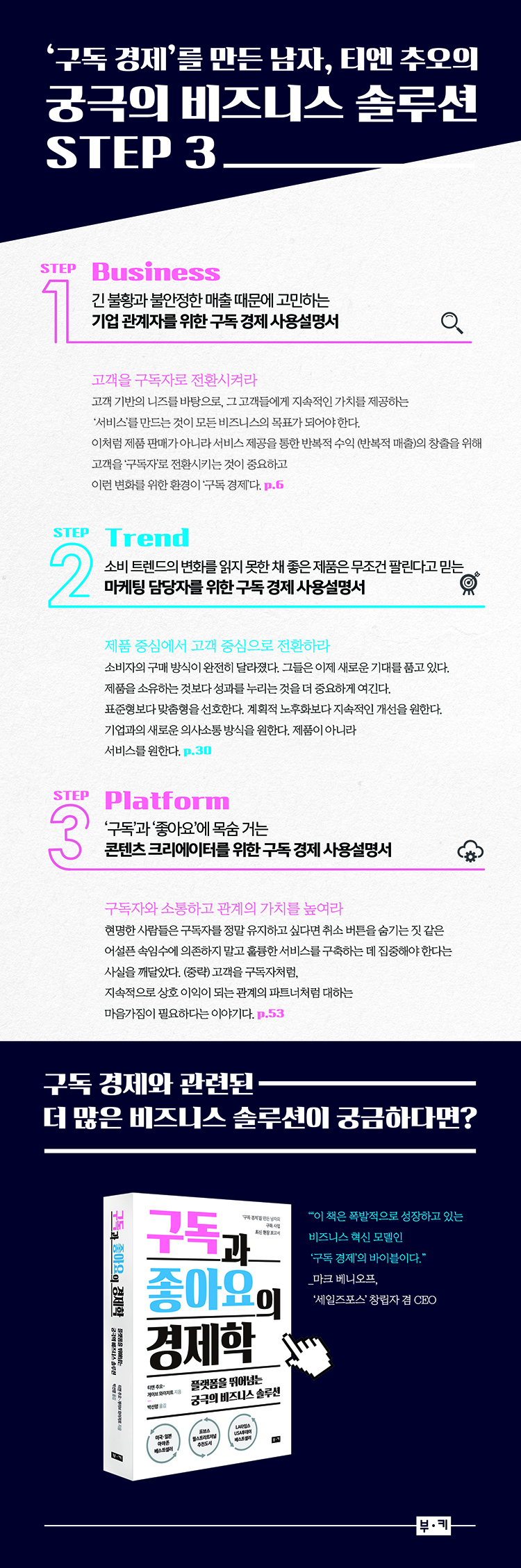 이 책은 폭발적으로 성장하고 있는 비즈니스 혁신 모델인 ‘구독 경제’의 바이블이다. - 마크 베니오프 (‘세일즈포스’ 창립자 겸 CEO)