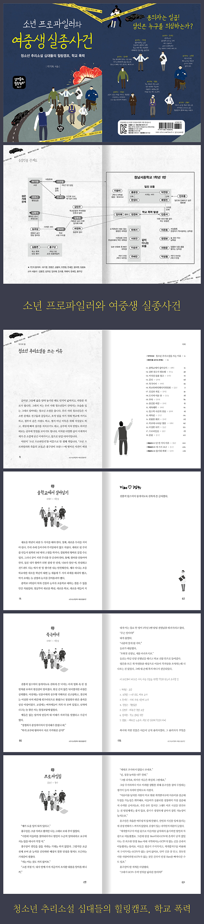 등장인물 소개 & 관계도 01. 중학교에서 살아남기 _최예서 02. 강한 친구가 필요해 _진수용 03. 버려진 물품 창고 _한세민 04. 증인 _임미혜 05. 북극마녀 _최예서 06. 학교폭력대책자치위원회 _김동연 07. 진실과 거짓 _한세연 08. 드디어 이룬 꿈 _진수용 09. 부탁 _임미혜 10. 불길한 예감 _한세민 11. 체육대회 _최예서 12. 립스틱 사건의 진실 _임미혜 13. 체육관 _심규상 14. 위험한 회의 _한세민 15. 학교에 나타난 경찰 _최예서 16. 이상한 녀석 _김동연 17. 프로파일링 _김동연 18. 불꽃 _홍구산 에필로그 1단 한 가지 이유 _김동연 에필로그 2세 가지 요구 _홍구산 에필로그 3용서와 화해 _임미혜 |