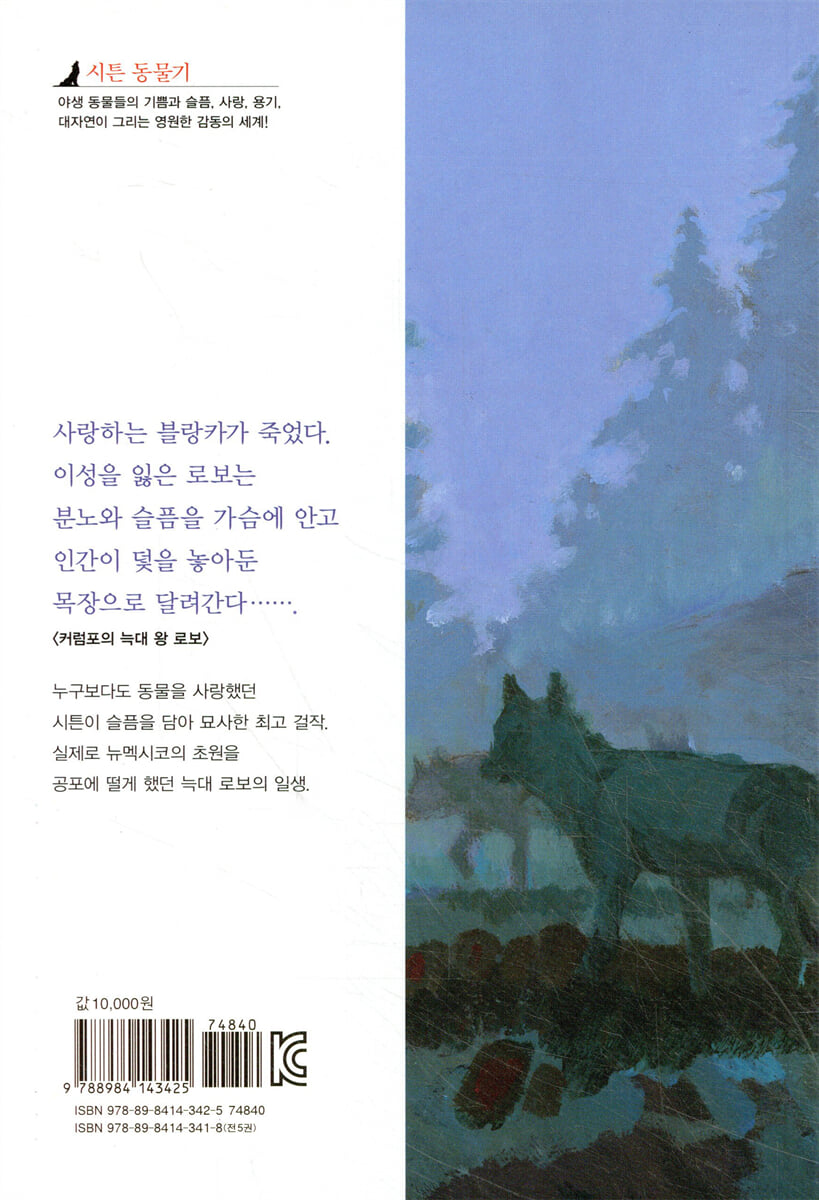 “그 잿빛 파괴자한테는 교묘하게 섞은 독약도, 주문도, 마법도 통하지 않았다.” 시튼은 1893년 뉴멕시코지역으로 사냥을 나갔는데, 이때의 경험이 녹아든 [커럼포의 왕 로보]는 실제로 미국 서부 뉴멕시코의 목장 주인들을 공포에 떨게 한 늑대의 이야기이다. 당시 사람들은 로보 잡기에 혈안이 되어 독약과 덫을 놓고 어마어마한 현상금을 내걸었다. 하지만 로보는 인간을 비웃듯 늘 한 발 앞서는데……. 인간과 야생 동물의 치열한 삶 속에서 선과 악의 경계 또한 모호해진다. 산토끼의 영웅 리틀워호스 “공정한 경기 좋아하네! 너희들이 말하는 공정한 경기가 이런 거냐?” 시튼의 동물 이야기 중 드물게 해피엔딩이다. 누구에게 좋은 결말이냐고? 작은 야생 토끼, 리틀워호스에게. 콜로세움이 연상되는 경기장에서 사나운 개들에게 쫓기며 필사적으로 달리는 리틀워호스. 하지만 리틀워호스는 강인한 정신력과 뒷다리에, 도와 줄 친절한 ‘사람 친구’도 있었다. 생명을 오락거리로 학대하는 일이 여전히 벌어지는 21세기에 더욱 의미 있다. 지혜로운 까마귀 실버스팟 “나는 까마귀들이 어떤 면에서는 인간보다 더 나은 사회 조직과 언어를 가졌다는 사실을 조금씩 깨달았다.” 새의 깃털 수를 일일이 세어 4,915개라는 것을 알아낼 정도로 야생 동물을 유심히 관찰한 시튼. 실버스팟이 무리에게 자신의 재치와 용맹과 지혜를 가르치는 모습이 생생하다. 실버스팟은 참 좋은 선생님이지만 자연의 섭리가 그러하듯 천적 가득한 야생에서 살아남기란 쉬운 일이 아니니…… 한때 까마귀들의 터전이던 소나무 언덕만이 그 시절을 굽어보는 듯하다. 야성의 개 빙고 “그날 위험했던 건 당신이었어요. 그게 뭔지는 모르지만 빙고가 곁에 남아서 당신 목숨을 구한 거죠.” 빙고는 형의 개이지만 ‘나’와의 우정은 늘 각별했다. 옆집 개가 영문을 모르고 죽자 나는 복수를 다짐하다가도 빙고가 그랬다는 사실을 알고 슬그머니 발을 빼기도 하고, 빙고가 덫에 걸렸을 때는 내가, 내가 덫에 걸렸을 때는 빙고가 서로를 구해 주기도 한다. 둘의 우정은 언제까지나 지속될까? 서로 다른 두 존재가 깊은 유대를 맺는 과정이 뭉클하다. 동물학자이자 예술가이던 시튼이 직접 그린 삽화 어릴 때부터 그림을 좋아했으며 영국과 파리에서 미술을 공부한 시튼은 자신의 동물 이야기에 직접 그림을 그렸다. 특히 《시튼 동물기》에서는 자기만의 해석과 풍부한 상징과 은유로 생명의 불합리와 자연의 모순과 문학적 함의를 완벽하게 담아내었다. 그 그림은 거친 듯 투박하지만 글과 어우러지며 깊은 의미를 품고 작품의 문학성을 더욱 돋보이게 만들어 준다. 그려진 지 한 세기가 넘어 빛은 바랬지만 흑백의 선 안에서 여전히 야생 동물의 삶만은 형형하고 생생하게 빛나고 있다. 인간과 자연이 조화를 이루어야 한다고 믿은 시튼. 자연과 동물에 대한 시튼의 매혹적인 글과 그림은 오늘날까지 전 세계 사람들에게 위대한 유산으로 남아 있다. |