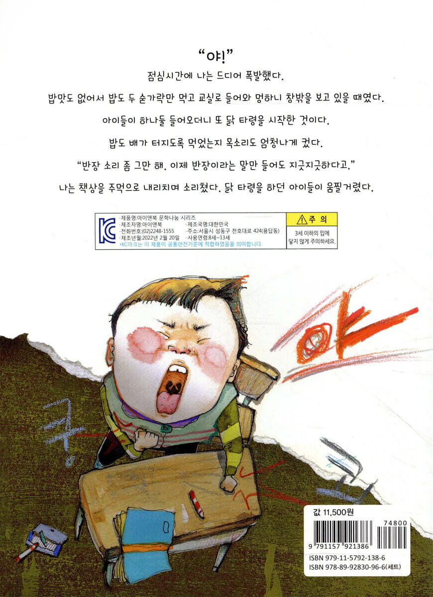 세상에 태어나 단 한 번도 ‘장’ 자가 들어간 걸 해 본 적 없는 수형이는 어쩌다가 임시 반장이 되고 결국 진짜 반장까지 된다. 하지만 반장이 된 지 얼마 지나지 않아 닭다리 사건이 터지고, 지갑 도난 사건이 터지고, 급기야 폭력 사건까지 터진다.
