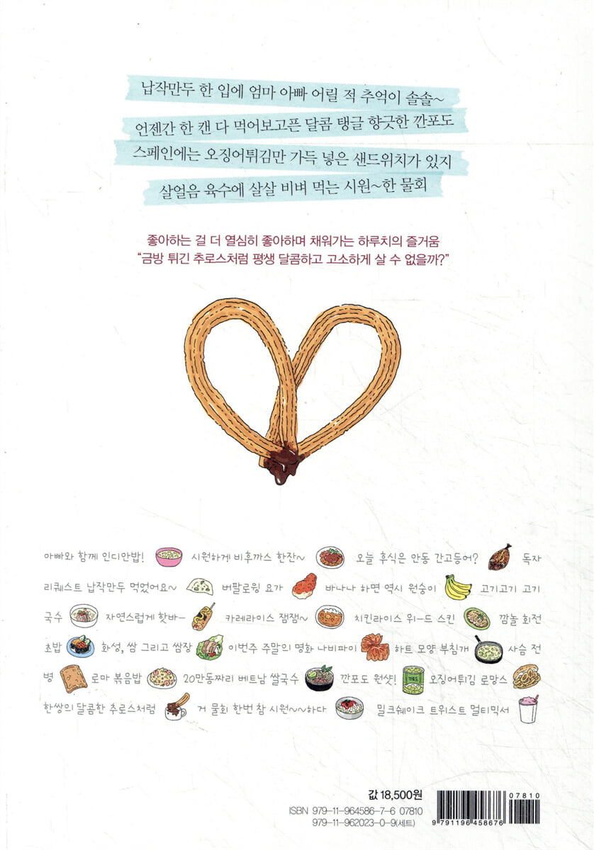 212 화 아빠와 함께 인디안밥! 15 213화 시원하게 비후까스 한잔~ 37 214화 오늘 후식은 안동 간고등어? 59 215화 독자 리퀘스트 납작만두 먹었어요~ 79 216화 버팔로윙 요가 101 217화 바나나 하면 역시 원숭이 123 218화 고기고기 고기국수 143 219화 자연스럽게 핫바- 165 220화 카레라이스 잼잼~ 187 221화 치킨라이스 위-드 스킨 209 222화 깜놀 회전초밥 233쪽 223화 화성, 쌈 그리고 쌈장 265 224화 이번주 주말의 명화 나비파이 225화 하트 모양 부침개 315 226화 사슴 전병 335 227화 로마 볶음밥 371 228화 20만동짜리 베트남 쌀국수 403 229화 깐포도 원샷! 437 230화 오징어튀김 로망스 455 231화 한쌍의 달콤한 츄로스처럼 483 232화 거 물회 한번 참 시원~~하다 511 233화 밀크쉐이크 트위스트 멀티믹서 533 후기 만화가 되길 정말 잘했다 558 참고한 책과 자료 556 취향으로 보는 등장인물 2019 570 그리고 재미있는 이야기 더! 댓글 모음 '이것만큼은 꼭 아이와 함께 하고 싶다' 34 인디안밥 추억의 광고 36 오무라이스잼잼 10주년 탄생 스토리1 58 오무라이스잼잼 10주년 탄생 스토리2 78 당면의 이모저모 100 recipe 버팔로윙 121 맛집 탐방 앵커 바 122 recipe 따뜻한 피넛버터 바나나 142 오무라이스잼잼 10주년 탄생 스토리3 164 오무라이스잼잼 10주년 탄생 스토리4 186 오뚜기 카레 추억의 광고 208 오무라이스잼잼 10주년 탄생 스토리5 232 맛집 탐방 겐로쿠스시 264 우리나라 쌈채소 도감 285 맛집 탐방 궁전제과 314 recipe 타이완 굴전 334 맛있는 여행 나라 풍경 사진앨범 369 오무라이스잼잼 10주년 탄생 스토리6 402 맛있는 여행 권PD의 호찌민 이야기 433 오무라이스잼잼 10주년 탄생 스토리7 436 깐포도는 어떻게 만들어질까? 453 댓글 모음 '나 혼자서 전부 다 먹어보고 싶은 음식'454 맛집 탐방 라 깜빠나 482 맛집 탐방 초콜라테리아 산 히네스 510 오무라이스잼잼 10주년 탄생 스토리8 532 recipe 좀 지나치다 싶은 밀크셰이크 555 |