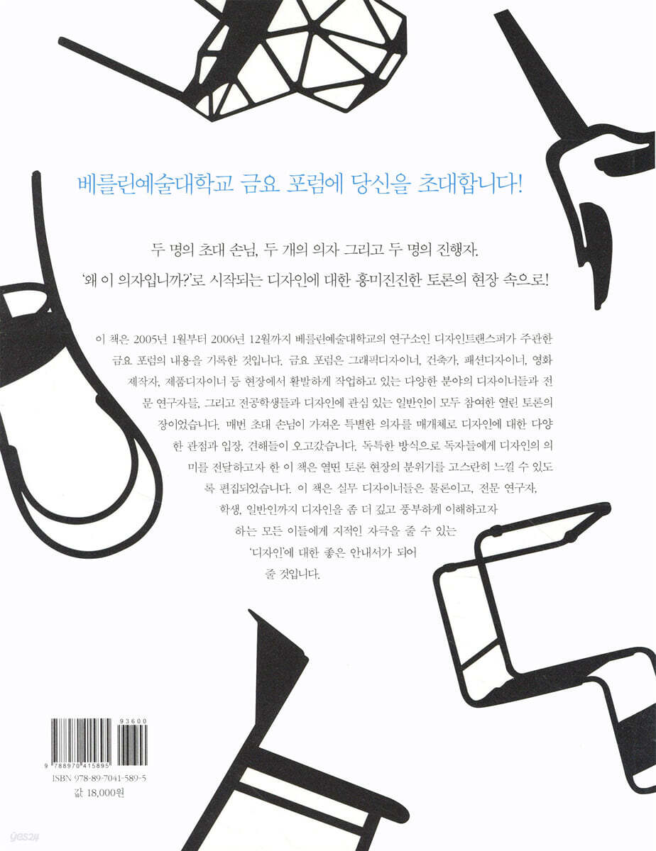 여기 옆집이나 뒷집 부엌에 하나쯤 놓여 있을 법한 저렴한 나무 의자가 있다. 찰스 임스 부부의 의자와 비교할 수는 없겠지만, 앉았을 때 편안하고 손때가 묻어 정이 가는 그 의자. 누가 만들었는지도 모르는 그 평범한 의자 앞에서 한 디자이너는 이렇게 질문한다. “지난 20년 동안 우리가 새로운 디자인을 위해 투자한 노력과 돈이 조금 지나친 것은 아닐까? 과연 우리에게 이 모든 새로운 디자인이 다 필요한 것일까?” 어디서나 볼 수 있는 나무 의자가 과잉생산, 과잉디자인에 대한 문제를 제기하게 하고 디자인 시장이 팽창하면서 오히려 위축되는 디자인의 실질적 의미를 고찰하게 만드는 과정을 살펴보는 것은 꽤 흥미진진하다. ‘왜 이 의자입니까?’로 시작되는 디자인에 대한 흥미진진한 토론의 현장 속으로! 이 책은 2005년 1월부터 2006년 12월까지 베를린예술대학교 산하 연구소인 디자인트랜스퍼가 주관한 금요 포럼의 내용을 기록한 것이다. 금요 포럼은 전문가부터 일반인까지 다양한 관심사와 시각을 가지고 있는 사람들이 만나 ‘디자인’에 대해 이야기해보자는 취지로 기획된 공개 토론 행사로, 두 명의 초대 손님이 가져온 두 개의 의자로부터 이야기를 풀어나간다는 독특한 콘셉트로 진행되었다. 이 토론은 초대 손님들을 향해 “왜 이 의자입니까?”라는 질문을 던지며 시작한다. 그래픽디자이너, 건축가, 패션디자이너, 영화감독, 인포메이션디자이너 등 현장에서 활발하게 작업하고 있는 다양한 분야의 디자이너들과 전문 연구자, 언론인들이 서로 짝을 이루어 토론을 진행하는 동안 등장한 의자는 모두 18개. 르코르뷔지에의 클래식한 작품인 이지 체어부터 동네 슈퍼 앞에서도 발견할 수 있는 싸구려 플라스틱 의자까지, 초대 손님들이 고심 끝에 선택한 의자의 스펙트럼은 극과 극이다. ‘디자이너가 말하는 디자인’이라는 부제가 붙은 금요 포럼에 등장한 다양한 의자들은 그 탄생 배경만큼이나 다양하고 흥미진진한 디자인에 관한 이야기들을 이끌어내는 매개체가 되어 준다. 우리를 둘러싼 모든 물건들은 모두 나름 존재 이유가 있다. 선택의 기준이 디자인이든 기능이든 어떤 물건을 고른다는 것은 그 물건에 자신의 취향을 반영한다는 것이다. 그렇기 때문에 초대 손님들에게 ‘왜 그 의자를 선택했는지’ 묻는 것은 결국 디자이너가 가지고 있는 자신만의 디자인 정체성을 묻는 꽤 난해하고 어려운 질문인 셈이다. 다각도로 접근한 디자인의 세계 책장을 넘길 때마다 토론 현장의 열띤 분위기를 고스란히 느낄 수 있도록 편집된 이 책의 가장 큰 장점은 디자인과 관련된 논쟁적인 이슈들은 물론이고 디자인의 역사에서 빼놓을 수 없는 중요한 인물, 작품, 개념들을 흥미롭게 개괄할 수 있다는 것이다. 과잉이라 부를 수 있을 정도로 온갖 ‘디자인된 것들’에 둘러싸여 살아가지만, 막상 ‘디자인’이 무엇일까, 라는 질문에 명쾌하게 대답할 수 있는 사람은 별로 없다. 독특한 방식으로 독자들에게 디자인의 의미를 전달하고자 한 이 책은 디자인에 대한 정의는 물론이고, 마케팅과 클라이언트, 유통 같은 디자인 산업 관련 이슈, 디자이너의 역할, 디자인 교육, 디자인 비평에 이르기까지 다각도로 접근한 ‘디자인의 세계’를 담고 있다. 《왜 이 의자입니까?》는 실무 디자이너들은 물론이고, 전문 연구자, 학생, 일반인까지, 디자인을 좀 더 깊고 풍부하게 이해하고자 하는 모든 이들에게 지적인 자극을 줄 수 있는 ‘디자인’에 대한 좋은 안내서가 되어줄 것이다. |