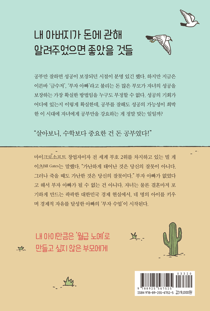 공부만 잘하면 성공이 보장되던 시절이 분명 있긴 했다. 하지만 지금은 이른바 ‘금수저’, ‘부자 아빠’라고 불리는 돈 많은 부모가 자녀의 성공을 보장하는 가장 확실한 방법임을 부정할 수 없다. 성공의 기회가 어디에 있는지 이렇게 확실한데, 공부를 잘해도 성공의 가능성이 희박한 이 시대에 자녀에게 공부만을 강요하는 게 정말 맞는 일일까? 온라인상에서 ‘경제적 자유를 찾아서’라는 필명으로 활동하고 있는 저자 박성현은 ‘흙수저’ 집안에서 태어나 빚을 안고 사회생활을 시작했다. 자녀에게만큼은 가난을 물려줄 수 없다는 생각에, 이름만 들어도 알 만한 대기업에 들어가 영화, 방송, 문화콘텐츠, IT 및 ICT 관련 사업을 진행하며 18년 동안 성실한 ‘월급 노예’의 삶을 살았다. 하지만 직장생활만으로는 ‘경제적 자유인’으로 거듭날 수 없었고, 변해가는 시대에 수학보다 중요한 건 자본주의와 돈, 금융에 관한 지식임을 철저히 깨달았다. 그는 책과 강연, 인터넷을 통해 쌓은 지식과 이를 실천한 노력으로 마침내 경제적 자유를 달성했다. 자신이 알게 된 것을 사랑하는 네 명의 아이들에게도 꼭 전수해주고 싶어 쓰기 시작한 책이 바로, 『아빠의 첫 돈 공부』다. 안타깝게도 대한민국 교육 시스템 안에서는 ‘돈’에 대해서 배울 수 없기에, 그는 육아휴직 제도를 통해 얻은 물리적 시간에 직접 선생이 되어 자녀들에게 가성비 높은 금융 지식을 가르쳤다. 덕분에 자녀들이 적어도 자신보다는 노예생활을 덜 하게 될 것이라고 확신하게 되었다. 내 아이만큼은 ‘월급 노예’로 만들고 싶지 않은 부모에게 저자는 여타의 재테크 고수와 다르게 예·적금, 주식, 부동산, 외환, 자영업 등 ‘수익’을 얻을 수 있는 모든 투자 수단에 관해 공부하고 과감하게 실행에 옮겼다. 평소 ‘한 우물을 파면 결국 하나의 우물만 갖게 된다’는 신념을 가진 덕분에, 비가 내리든 햇볕이 쨍쨍하든 돈을 버는 우산 장수와 짚신 장수 아들을 둔 어머니처럼 어떤 경제적 상황에서도 현금흐름이 창출되는 전천후 투자 비결을 갖출 수 있었다. 책 역시 그 제목만큼이나 돈 공부를 처음 시작하는 이들에게 모자람이 없다. 돈을 노예로 부려서 자금을 마련하는 1장 ‘일해서 아끼는 돈’, 마침내 투자의 신세계로 접어들게 만드는 2장 ‘모아서 키우는 돈’, 가성비 높은 금융 지식을 담은 3장 ‘알아야 지키는 돈’, 빛이 되는 빚의 활용법을 소개하는 4장 ‘자본이 되는 돈’, 투기와 투자를 구분해 슬기로운 투자생활을 돕는 5장 ‘돈 버는 돈’, 사람들이 놓치고 있는 성공률 100%의 틈새 투자법을 소개하는 6장 ‘잡아야 잡히는 돈’으로 알차게 구성됐다. 마이크로소프트의 창업자이자 전 세계 부호 2위를 차지하고 있는 빌 게이츠(Bill Gates)는 말했다. “가난하게 태어난 것은 당신의 잘못이 아니다. 그러나 죽을 때도 가난한 것은 당신의 잘못이다.” 부자 아빠가 없었다고 해서 부자 아빠가 될 수 없는 건 아니다. 책을 펼치면, 자녀는 물론 결혼마저 포기하게 만드는 팍팍한 대한민국 경제 현실에서, 네 명의 아이를 키우며 경제적 자유를 달성한 아빠의 ‘부자 수업’이 시작된다. |