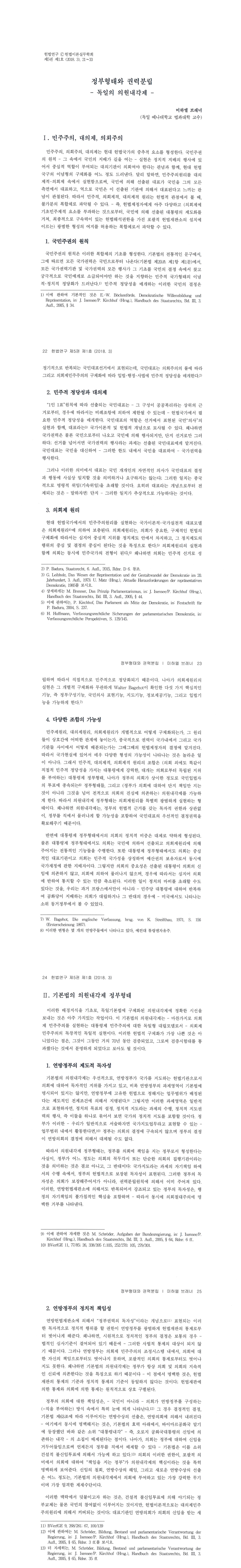 Michael Brenner Regierungssystem und Machtverteilung - Das parlamentarische Regierungssystem der Bundesrepublik Deutschland [번역문] 정부형태와 권력분립 - 독일의 의원내각제 윤정인 헌법개정에 있어서 민주적 정당성 양정윤 한국 민주주의의 현실과 정당의 역할 ■ 특 집 1 한-독 국제학술회의 (2017. 11. 7.) 「헌법개정과 정부형태」 학술회의 지상중계 ■ 특 집 2 한-독 국제학술회의 (2017. 11. 8.) 「헌법개정과 민주주의」 학술회의 지상중계 ■ 자 료 김현정 대통령 탄핵사건과 헌법이론실무학회 |