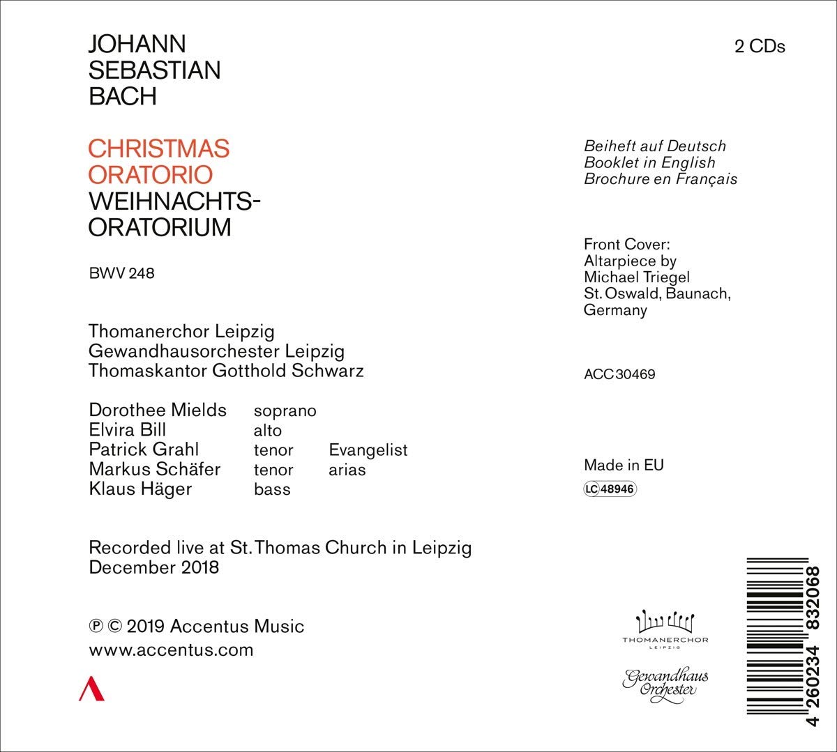 CD 2018년 12월 라이프치히 성 토마스 교회 실황 Gotthold Schwarz 바흐: 크리스마스 오라토리오 (Bach: Christmas Oratorio)