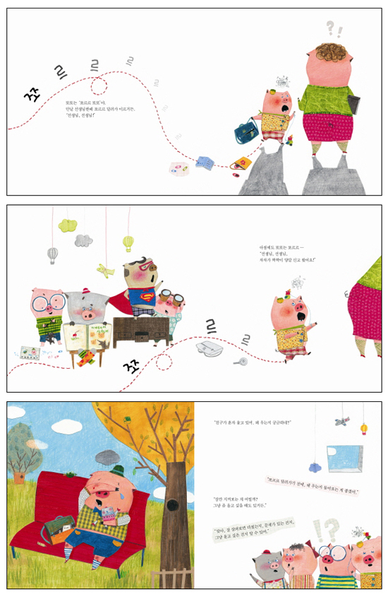 놀이터에 가거나 친구 집에 놀러 가면 얼마 지나지 않아 엄마에게 쪼르르 달려오는 아이들이 있습니다. 친구가 장난감을 빼앗았다거나 같이 놀아주지 않는다고 시시콜콜한 일들을 일러바치곤 합니다. 이럴 때 엄마들은 잠깐 고민을 한 뒤 친구와 이야기로 해결할 수 있는 일이라면 그렇게 하라고 돌려보냅니다. 그러나 아이가 와서 이야기하는 모든 일을 혼자 해결하라고 할 수는 없습니다. 위험한 장난을 한다거나 낯선 사람과 이야기를 하는 일은 엄마가 꼭 알아야 할 일이기 때문입니다. 그렇다고 24시간 아이와 붙어 있을 수도 없는 일이지요. 아이 혼자 어떤 문제 상황에 처했을 때, 어른들에게 알릴만한 일인지 아닌지 어떻게 하면 잘 판단하도록 할 수 있을까 하는 것은 엄마들의 중요한 고민 중 하나입니다. 이렇듯 자기 주변에서 일어나는 모든 일을 일러바치는 아이뿐 아니라 한마디도 하지 않는 ‘꿀 먹은 벙어리형’ 아이, 정도의 차이는 있지만 결국은 판단력과 표현력의 문제입니다. 차일드 커뮤니케이션 시리즈 『쪼르르 또또』는 이런 고민에 빠진 엄마들이라면 아이들과 함께 반드시 읽어볼 만한 책입니다. 이 책은 고자질과 어른에게 도움을 요청하는 것의 차이를 일깨워 주는 그림책입니다. 귀여운 돼지 캐릭터가 어우러진 재미있는 그림과 알록달록한 종이를 정성스럽게 오려붙인 특별한 그림이 유아들의 흥미를 불러일으킵니다. 이 책은 다양한 상황을 담은 재미있는 그림과 함께 아이들 스스로 어른에게 알려야 할 일인가 아닌가 판단해 볼 수 있도록 이야기가 구성되었습니다. ‘친구가 신기한 모자를 쓰고 왔다면?’, ‘동생이 날카로운 포크를 들고 있다면?’, ‘친구가 재미있는 그림책을 계속 혼자만 보고 있다면?’, ‘친구들이 불장난을 한다면?’……. 이 책에서는 이러한 상황을 놓고 등장인물들이 고민하는 장면이 유아들의 눈높이에 맞게 사실적이면서도 흥미롭게 묘사되어 있습니다. 이 책을 읽는 아이들은 책 속 등장인물들의 대화를 따라가며, 자기 스스로 상황을 판단할 수 있는 단초를 마련하게 될 것입니다. 또한 책을 다 읽고 나서 “이럴 때는 선생님께 말씀드려야 할까?”, “왜 그렇게 생각했니?”와 같은 질문을 통해 아이와 함께 생각해 볼 시간을 가지면 좋습니다. 이러한 대화를 통해 아이 스스로 어른에게 알릴만한 일인지 아닌지를 판단할 수 있는 올바른 판단력이 키워질 테니까요. |