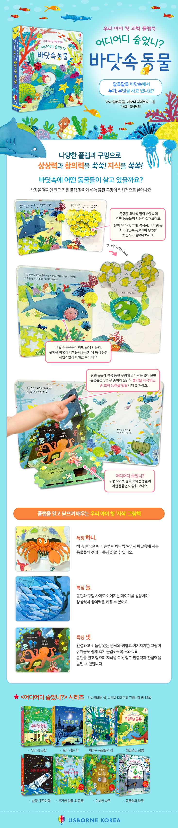 ◆ 플랩과 구멍 속에 꼭꼭 숨은 바닷속 동물을 찾아요!