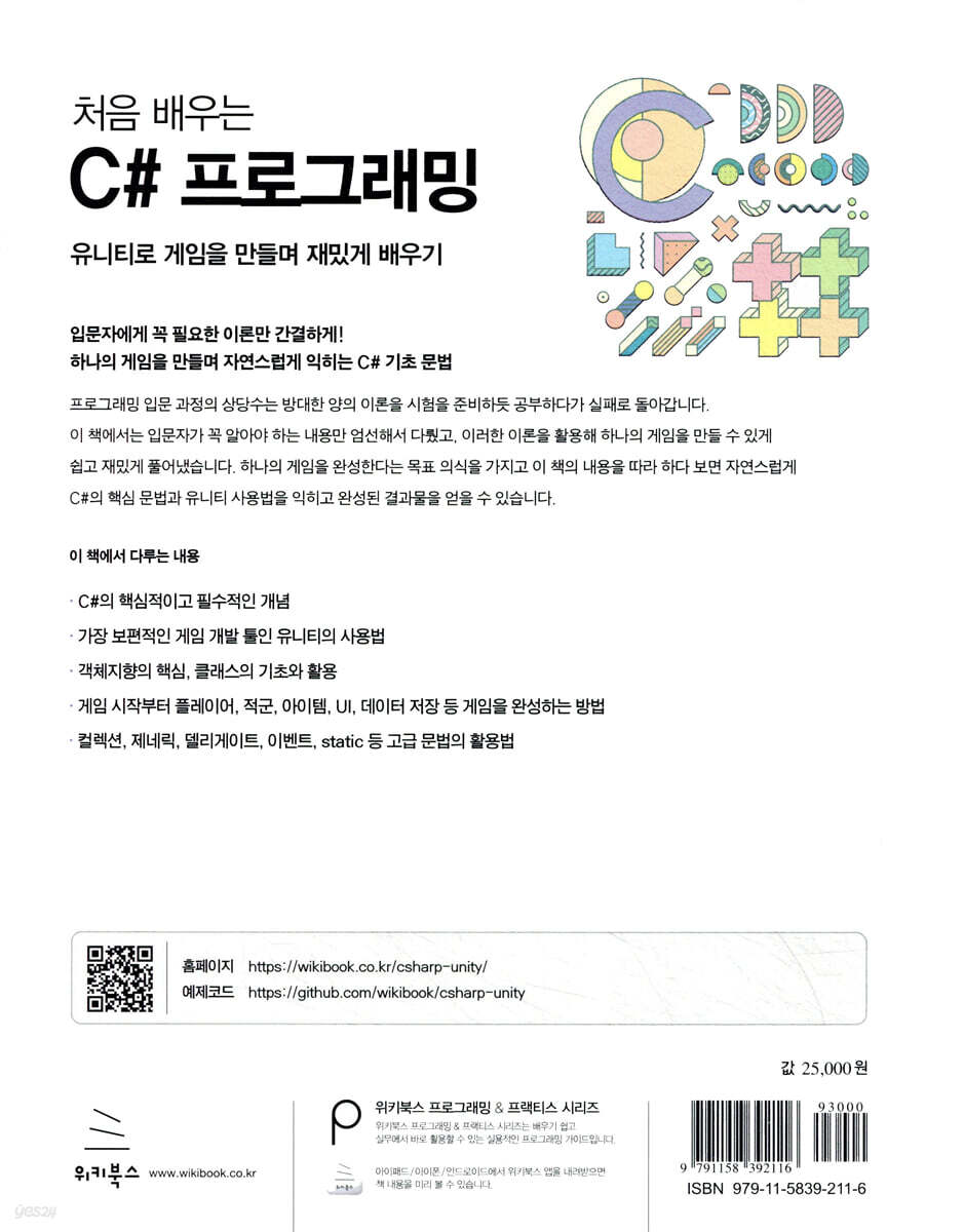 ◎ C#의 핵심적이고 필수적인 개념 ◎ 가장 보편적인 게임 개발 툴인 유니티의 사용법 ◎ 객체지향의 핵심, 클래스의 기초와 활용 ◎ 게임 시작부터 플레이어, 적군, 아이템, UI, 데이터 저장 등 게임을 완성하는 방법 ◎ 컬렉션, 제네릭, 델리게이트, 이벤트, static 등 고급 문법의 활용법 |