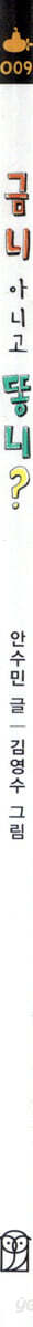 동민이와 엄마의 아슬아슬한 신경전! 피아노면 피아노, 미술이면 미술, 운동이면 운동…. “우리 동민이라면 할 수 있을 거야!”라는 엄마의 기대를 단 한 번도 제대로 충족시킨 적 없던 동민이가 어처구니없는 일을 ‘해내고’ 맙니다. 치킨을 먹다가 임시로 붙인 새 금니를 꿀꺽 삼킨 것이죠. 엄마는 금니를 찾아가면 비용을 더 내지 않아도 된다는 말에 동민이의 똥을 뒤져 금니를 찾기로 합니다. 그런데 똥에서 나온 금니를 소독만 해서 입안에 그냥 붙인다니, 동민이의 근심이 커져만 갑니다. 맛있는 것을 먹어도 똥 맛이 나면 어떡하죠? 친구들이 입에서 똥 냄새가 난다고 놀리면요? 좋아하는 옆 반 여자아이가 코를 막고 뒷걸음질한다면 정말 어떡하나요? 『금니 아니고 똥니?』는 어떻게든 금니를 되찾으려는 엄마와 차마 똥과 함께 나온 ‘똥니’를 입에 붙일 수 없어 엄마 몰래 학교에서 똥을 누려는 동민이 사이의 신경전을 유쾌하게 그린 동화입니다. 1인칭 화자 동민이의 입장에서 하루 사이에도 몇 번씩 천국과 지옥을 오르내리는 마음이 유쾌한 문장으로 펼쳐집니다. 동민이가 겪은 일들과 이를 서술하는 동민이의 심리에는 저학년 어린이들이 공감할 만한 요소가 가득합니다. 온갖 생각이 절로 떠오르게 하는 치과 의자에 앉아 공포에 떨며 치료를 받았던 어린이라면, 똥 싸는 모습을 반 친구들에게 들키지 않으려고 일부러 이른 시간이나 수업 시간에 화장실에 갔던 어린이라면, 그리고 무엇보다 부모님이나 선생님께 거짓말을 하고는 조마조마한 마음에 전전긍긍했던 어린이라면 절절히 공감하고 웃으며 읽을 수 있을 것입니다. 어이없고 속상한 일이 만든 ‘웃프고’ 재미난 이야기! 유머러스한 태도가 전하는 신선한 위로! 치킨을 먹다가 저도 모르게 금니를 꿀꺽 삼킨 것, 동민이가 신문지에 싸 놓은 똥을 엄마가 나무젓가락으로 뒤적거리는 것, 엄마와 친구들 몰래 학교에서 똥을 싸기 위해 신중하게 계획을 세우고 실천하는 것 모두 어처구니가 없어서 웃음이 나오는 상황입니다. 그야말로 웃기고 슬픈, ‘웃픈’ 에피소드의 연속이지요. 그런데 이는 동민이에겐 나름대로 고달프고 힘겹게 며칠을 보낸 이야기입니다. 서러움에 북받쳐 엉엉 울면서 엄마에게 미안하다고 고백하는 장면에서 동민이가 얼마나 마음고생을 심하게 했는지 알 수 있지요. 이 이야기는 작가 안수민 선생님이 동민이처럼 치킨을 먹다가 금니를 삼켜서 어이없고 속상했던 경험을 바탕으로 쓴 것이라고 합니다. 선생님은 처음에는 속이 쓰리고 괴로웠던 일 덕분에 재미있는 동화를 쓰게 되었다며 ‘작가의 말’에서 이렇게 말합니다. “처음에는 무척 속상한 일이었는데 행복한 기억으로 남게 되었다니 참 재미있지요? 여러분들도 이런 경험이 있나요? 엄마한테 혼나거나 친구랑 싸워서 기분 나빴던 일이 시간이 지나고 보면 별것 아닌 게 되고, 오히려 좋은 추억이 된 경험 말이에요. (…) 재미있는 일, 기쁜 일뿐만 아니라 슬픈 일, 화난 일도 귀중한 경험이 될 수 있답니다. 오늘 겪은 나만의 이야기를 그냥 흘려보내지 마세요. 그 이야기들이 모여 여러분의 하루가 되고, 1년이 되어 어린 시절을 반짝반짝 빛나게 해 줄 테니까요.” 누구나 돌이켜보면 아무것도 아닌 작은 일에 하늘이 무너지는 듯한 기분을 느낀 적이 있을 것입니다. 특히 어른들이 보기엔 별일 아닌 것이 어린이들에게는 세계를 부수고 다시 만들어야 하는 큰일처럼 여겨지기도 합니다. 그런 일을 겪고 있는 어린이들에게 『금니 아니고 똥니?』는 어려움 속에서도 유머를 잃지 않는 태도를 알려 주고, 신선하고 유쾌한 위로를 선사할 것입니다. 내달리는 듯 가벼운 문체와 쾌활하고 코믹한 그림의 만남! 작가 안수민 선생님은 초등학교 교사이자 세 아이의 엄마입니다. 늘 아이들과 함께하고 마음을 헤아려야 하기 때문일까요. 이 책이 첫 번째 동화라고 하기 어려울 만큼 시시각각 마음 졸이고 걱정하는 주인공 동민이의 심리를 섬세하게 잘 그려 냈습니다. 학교에서 수업 시간에 어린이들에게 먼저 읽어 주었다는 글답게 문체는 유쾌하게 내달리는 듯합니다. 덕분에 글 읽기가 아직 서툰 어린이들도 몰입해서 즐겁게 독서를 경험할 수 있을 것입니다. 그림을 그린 김영수 작가는 동민이의 이야기를 그림만 봐도 웃음이 나올 정도로 코믹하게 풀어냈습니다. 화려하고 경쾌한 두 가지 색깔로 채색한 그림은 키득키득 절로 웃음이 나오는 재미있는 이야기를 한층 더 재미있고 명랑하게 전해 줍니다. |