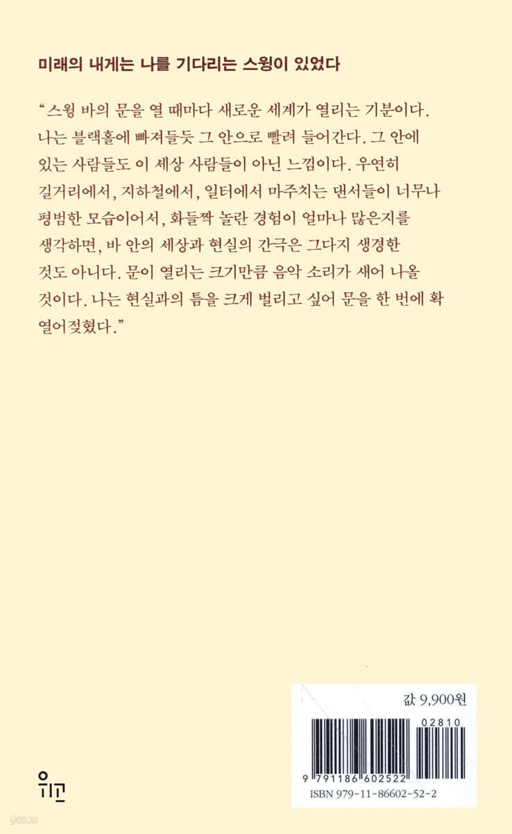 네이버 지식백과에 ‘스윙’을 검색하면 한 줄 소개가 나오는데, 저자는 이 설명이 꽤나 마음에 들었다고 한다. “어둠의 시기 사람들을 춤추게 하다.” 1929년에 시작된 대공황으로 침체된 경기가 1930년대 중반부터 차츰 살아나면서 사람들은 다시 활기를 찾았고 이때 등장한 재즈 연주 스타일인 스윙 음악이 인기를 끌었다. 이 음악에 맞춰 사람들은 몸을 흔들거렸을(swing) 것이고, 스윙 음악을 즐기기 위한 스윙 댄스도 번성했다. “음악에 푹 빠져 자못 과장된 표정으로 춤을 추는 사람들을 보며 나도 저들처럼 오늘을 얼마나 기다렸는지 다시금 깨닫는다. 노래 한 곡이 또 끝나간다. 새로운 곡이 시작되면 나도 이제 저 댄서들 속으로 들어가는 거다. 거기에 김선영 팀장은 없을 것이다.” _좋은 사람이 좋은 글을 쓰듯 춤으로 사람을 만나는 건 꽤 신비로운 경험이다. 어떤 언어도 필요 없이 춤으로 대화하는 그 순간엔 춤 말고는 아무런 편견이나 선입견도 끼어들지 않는다. 나이나 직업 등 사회적으로 규정지어진 것들도 무의미해진다. 사람의 성격이 춤에 녹아들어, 춤에 그 사람의 됨됨이가 비치기도 한다. 춤의 실력은 오히려 부차적이다. 갓 춤을 시작한 사람은 서툰 것이 당연하고, 오래 춘 사람은 상대적으로 좀 더 자연스러울 뿐이다. 연습을 많이 한 사람의 실력이 뛰어난 것은 부인할 수 없는 사실이고, 잘못된 춤을 고칠 생각 없이 제멋대로 추는 사람이 불편한 것은 어쩔 수 없다. 좋은 사람이 좋은 글을 쓰듯 좋은 사람이 좋은 댄서가 된다는 것을 굳게 믿지만, 그 믿음이 반대가 될 수 없다는 것도 믿는다. 어찌 되었든 좋은 댄서가 되기 위해서는 좋은 사람이 되기 위해 끊임없이 노력해야 한다. _울고 싶은 마음이 들면 스윙을 떠올린다 스윙을 시작한 뒤로 생긴 힘든 일들은 스윙을 할 수 있어서 이겨낸 것 같다. 일로 바빠지고 사람으로 괴로워지고 삶 자체로 고단해지다가도 스윙으로 이겨내고, 잘 이겨내서 또 스윙을 하는 것이다. 힘든 일들은 언제나 끊이지 않고 늘 새로워질 뿐이라, 스윙을 그만뒀다가 다시 시작했을 때도 힘든 일들이 사라지지는 않았다. 가끔은 스윙 자체가 힘들기도 했다. 잘하고 싶은 욕심에 힘들기도 하고, 사람 때문에 힘들어지기도 하는 건 스윙이나 일이나 다를 바 없었다. 하지만 스윙을 시작한 뒤로 속상하거나 힘든 일이 있을 때마다 스윙은 언제나 나를 확실하게 위로해주었다. 이제는 울고 싶은 마음이 들면 스윙을 떠올린다. 댄서는 미워도 이 춤은 미워할 수가 없고, 즐거울 때보다 슬플 때 더 생각이 나는 게 스윙이 되었다. 이 쓸쓸한 세상에서 위안을 보장받는다는 건 얼마다 다행스러운 일인가. _우리가 곧 다시 아름답게 춤출 수 있기를 ‘우주의 원더키디’도 알지 못했던 2020년의 모습을 우리가 어찌 알 수 있었겠는가. 해외여행과 파티를 하던 일이 이제는 어느 ‘시절’의 일이 되어버린 듯하다. “글쎄, 예전에는 백 명이 넘는 사람들이 한 공간에 모여서 마스크도 쓰지 않고 장갑도 끼지 않은 채 춤을 추던 시절이 있었다니까”라고 말하게 될 미래가 올까 봐 두렵다. 하지만 믿는다. 전 세계에 불어닥친 이 암흑의 시기를 이겨내고 다시 스윙을 출 수 있을 때까지 우리가 할 수 있고 해야 하는 일은 스윙에 대한 애정을 품은 채로 지금의 일상을 건강하게 잘 지켜내는 일일 것이라고. 그리고 바란다. 오래오래 건강하기를, 우리가 곧 다시 아름답게 춤출 수 있기를. |