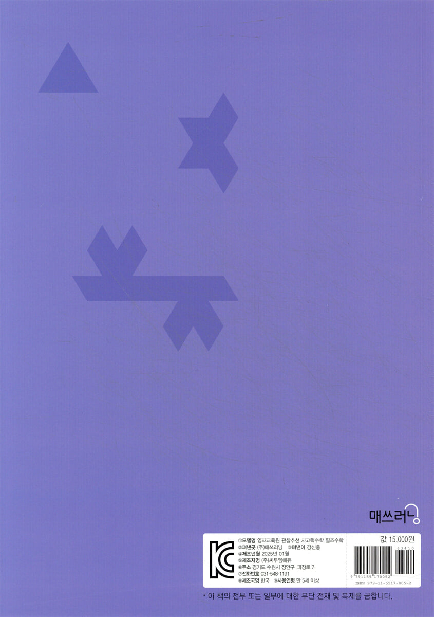 연속수의 성질 수와 숫자의 합 배수 판정법 약수의 개수 끝수와 0의 개수 수와 식 만들기 진법 활용 2. 도형 타일 붙이기 직육면체 입체도형 쌓기나무 3. 문자와 식 뉴튼산 거꾸로 생각하기 작업 능률 극단적으로 생각하기 |