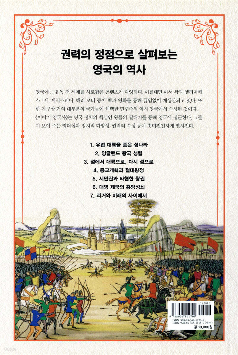 2. 잉글랜드 왕국 성립 3. 섬에서 대륙으로, 다시 섬으로 4. 종교개혁과 절대왕정 5. 시민권과 타협한 왕권 6. 대영제국의 흥망성쇠 7. 과거와 미래의 사이에서 |