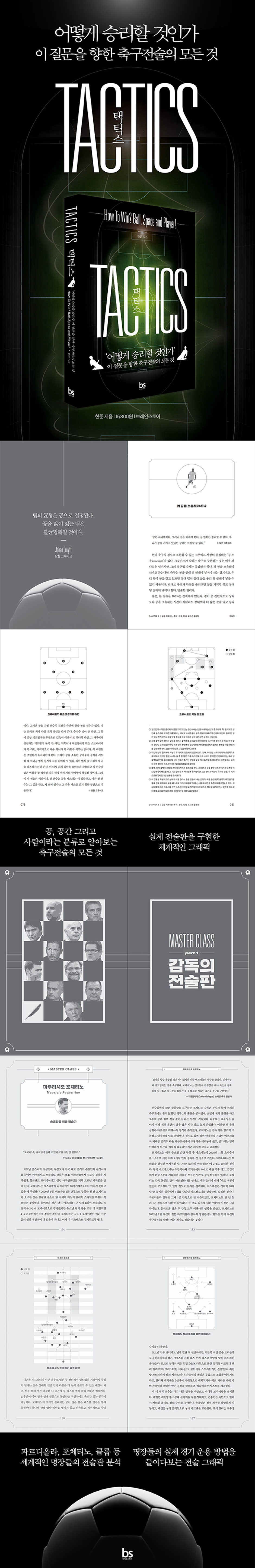 CHAPTER 1 전술의 역사 : 누가 축구를 바꿨나 o 전술의 혁명 : 1974년 FIFA 서독 월드컵 o 게임의 법칙 : 1992년 축구가 바뀐 해 o 사상적 결합 : 우익 축구와 좌익 축구의 투쟁사 o 메노티와 빌라르도의 융합, 비엘사의 등장 o 토탈 풋볼은 좌익도 우익도 아니다 o 과르디올라 축구 VS 시메오네 축구 CHAPTER 2 공을 지배하는 축구 : 소유, 지배, 포지션 플레이 o 왜 공을 소유해야 하나 o 토탈풋볼 ① 골키퍼는 첫 번째 공격수이고, 스트라이커는 첫 번째 수비수다 o 토탈풋볼 ② 깊어지기 위해선 넓어져야 한다 o 라볼피아나 ① 변형 스리백, 빌드업의 기본 o 라볼피아나 ② 센터백이 새로운 플레이메이커가 될 것이다 o 티키타카 : 경기를 지루하게 만드는 점유 축구, '티키나초' 논란 o 포워드 패스 : 소유는 전진 패스가 있어야 의미가 있다 o 포지션 플레이 : 득점으로 가기 위한 세 가지 우위에 대하여10 1 MASTER CLASS | 감독의 전술판 o 루이 판할 | 축구의 네 가지 국면 : 가장 중요한 것은 전환 순간이다 o 마르셀로 비엘사 | 포지션마다 전술적 통역사가 필요하다 o 후안마 리요 | 4-2-3-1의 창시자, 공격과 수비는 나눌 수 없다 o 주제프 과르디올라 | 완벽한 지배를 꿈꾸는 남자 o 마우리시오 포체티노 | 손흥민을 깨운 전술가 CHAPTER 3 공간을 장악하는 축구 : 통제, 압박, 역습 o 공을 가지면 실수한다 / 공간을 열면 기회가 생긴다 o 카테나초 : 자신을 위해 뛰는 것은 적을 위해 뛰는 것이다 o 프레싱 : 언제, 어디서, 어떻게 압박할 것인가 o 측면은 내주고 중원은 통제하라 o 4-4-2의 부활 : 날개 없는 투톱, 마법의 사각형 o 게겐프레싱 : 5초 안에 공을 되찾아라 241 MASTER CLASS | 감독의 전술판 o 아리고 사키 | 공격과 수비는 25m 이상 떨어져선 안 된다 o 파비오 카펠로 | 발로 이기는 게 아니라 머리로 이기는 것이다 o 주제 무리뉴 | 영혼의 텐백, 공 없이 경기를 통제하는 법 o 디에고 시메오네 | 노력은 협상의 대상이 아니다 o 안토니오 콘테 | 고전적 스리백의 복원 o 위르겐 클롭 | 더 많이 뛰면 차이를 만들 수 있다 CHAPTER 4 선수를 활용하는 축구 : 포지션, 유틸리티, 개인기 좋은 선수가 있으면 모든 게 쉬워진다 o 차이를 만드는 선수 o 멀티 플레이어 육성 o 스카우팅의 중요성, 좋은 선수 찾기 o 피지컬 관리만큼 중요한 멘탈 관리 o 포워드 : 만능 9번과 가짜 9번 o 윙어 : 가짜 7번과 측면 플레이메이커 o 미드필더 : 메찰라와 하프스페이스 o 수비수 : 풀백은 센터백으로, 센터백은 미드필더로 o 골키퍼 : 센터백과 나란히 선 골키퍼 에필로그 : 축구 전술의 진화, 축구 담론의 활성화 참고문헌 |