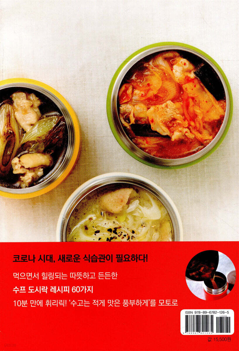 “이렇게 간단하면 나도 할 수 있어” 요알못인 당신을 위해 10년간 수프를 만들어온 수프 달인이 알려주는 초간단 수프 레시피 60가지 직장인과 가정주부들 사이에서 입소문을 타고 일본에서 10만 부 돌파!!! 점심으로 뭘 먹고 있나요? 테이크아웃이나 식당에서 간단하게 해결하는 경우가 많지 않나요? 하지만 하루의 중심에 있는 식사니까 듬뿍, 든든하게 먹고 싶잖아요. 수프 도시락은 당신의 점심시간을 바꿔줄 새로운 습관입니다. 썰어서 끓이기만 하면 끝. 단 10분 만에 만들 수 있다는 간편함이 장점이죠. 수프 도시락 하나만 있으면 점심에 따뜻한 수프를 먹을 수 있습니다. 재료가 가득 들어가 ‘떠먹는 수프’만으로 충분히 든든한 한 끼가 되지만, 여기에 작은 주먹밥이나 빵까지 곁들이면 최고의 점심이 되죠. 고기도 채소도 충분히 섭취할 수 있고 건강함이 가득한데다 맛도 있어요. 심지어 경제적이기까지 하다는 사실. 직접 만들어서 간도 재료도 내 마음대로 만들 수 있고 영양 관리도 하기 쉽답니다. 몸과 마음을 만족시키는 수프 도시락. 오늘부터 시작해 봐요! 코로나 시대, 새로운 식습관이 필요하다 10분 만에 휘리릭 ‘수고는 적게 맛은 풍부하게’ 수프 도시락이 당신의 점심시간을 바꿉니다! 먹으면서 힐링이 되는 따뜻하고 든든한 수프 도시락, 이제 당신만의 여유로운 점심시간을 즐기세요 2,800일 동안 매일같이 수프를 만들어온 아리가 카오루 작가의 비법은 간단합니다. 재료, 물, 양념을 냄비에 같이 넣고 끓입니다. 그리고 수프 전용 도시락통에 담고, 점심시간까지 기다리기만 하면 끝! 10분 만에 휘리릭 준비하는 수프 도시락의 특징은 1. 무조건 건더기는 많이 2. 볶거나 끓여서 단시간에 맛을 끌어내고 3. 시판 수프 재료는 사용하지 않는다는 점입니다. 따라서 바쁜 아침에 재빠르게 만들 수 있고, 요리에 젬병인 사람도 쉽게 만들 수 있는 레시피지요. 이 영양 풍부하고 간단하고 맛있는 수프 조리법인 『10분 완성 수프 도시락』은 일본의 직장인과 가정주부들 사이에서 입소문을 타면서 10만 부 판매를 돌파했습니다. 코로나 시대에 점심시간마다 붐비는 식당을 찾아다니는 위험과 수고를 덜 수 있는 혁신적인 식습관이 될 것입니다. 이제 간편한 수프 도시락으로 당신만의 여유로운 점심시간을 즐기세요! |
