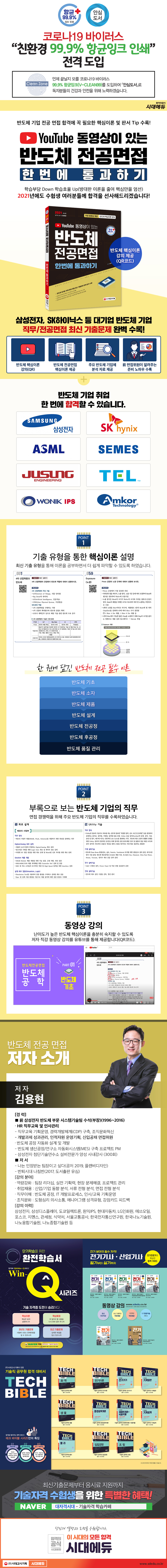 이 도서에는 삼성전자, SK하이닉스, ASML, 세메스, 원익IPS, AMK, 주성엔지니어링 등 반도체 기업의 채용의 관문을 뚫기 위해 꼭 알아야 할 반도체 산업의 직무와 반도체 최신 동향에 대한 정보가 담겨 있다.