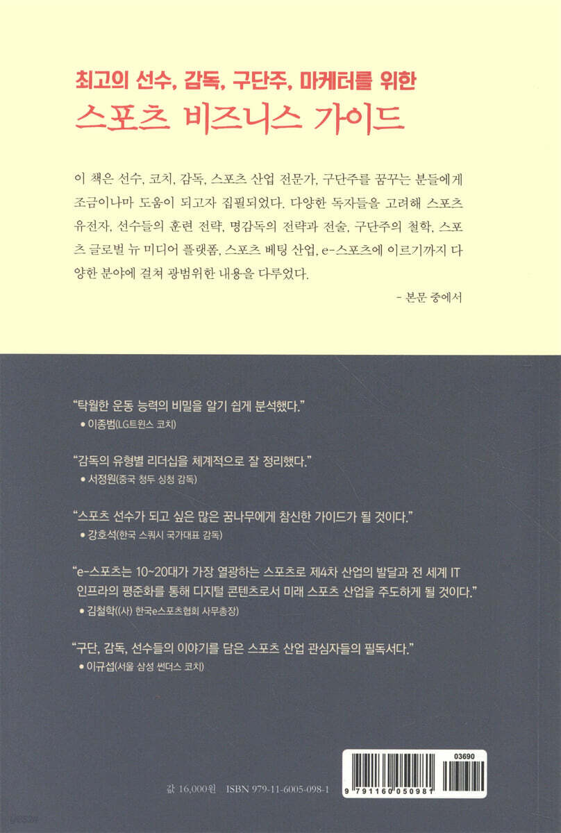 “구단, 감독, 선수들의 이야기를 담은 스포츠 산업 관심자들의 필독서다.” - 이규섭 (서울 삼성 썬더스 코치)