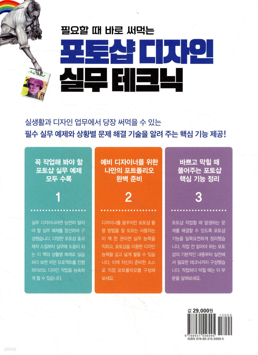 필수 실무 예제와 상황별 문제 해결 기술을 알려 주는 핵심 기능 제공! 이 책의 서두에는 현업에서 포토샵을 200퍼센트 이상 활용하는 전문가들의 인터뷰를 담았습니다. 브랜드 블라썸 이충갑 대표, 대진대 시각정보디자인과 윤여경 교수, C.O.G의 최용우 대표, JOONGHOCHOI STUDIO의 최현수 디자이너, LG전자 디자인경영센터 도일 책임연구원, ㈜한국인삼공사 브랜드실 황재필 디자이너. 이들의 인터뷰를 통해 현재 하고 있는 일과 현장에서 실제로 포토샵을 어떻게 활용하고 있는지 생생하게 알려줍니다. 또한 업무에 손쉽게 적용할 수 있는 간단한 실무 예제부터 포트폴리오를 위한 감각적인 예제까지 다양하게 수록하였습니다. 체계적으로 정리한 책 속 예제를 따라하다 보면 어느새 능숙하게 포토샵으로 디자인을 완성할 수 있으며, 다양한 포토샵 활용 사례를 통해 작품 이미지를 살펴보고 안목을 키울 수 있습니다. 예제 소스와 완성 파일은 별도로 성안당 홈페이지에서 제공합니다. |