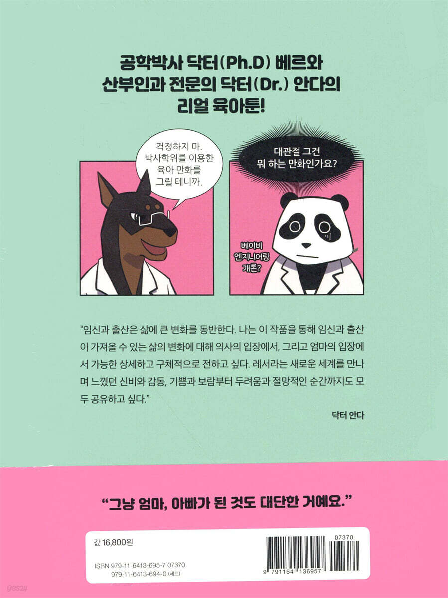 닥터(Dr.)와 닥터(Ph.D)가 만나서 정보와 근거에 충실한 육아 만화를 그렸다. 자료의 충실함으로는 적수를 찾기 힘든 작품. 산부인과뿐만 아니라 소아청소년과 내용까지 총망라하는 유익함에 소아청소년과 전문의도 강력 추천! - 고일용 (소아청소년과 전문의)