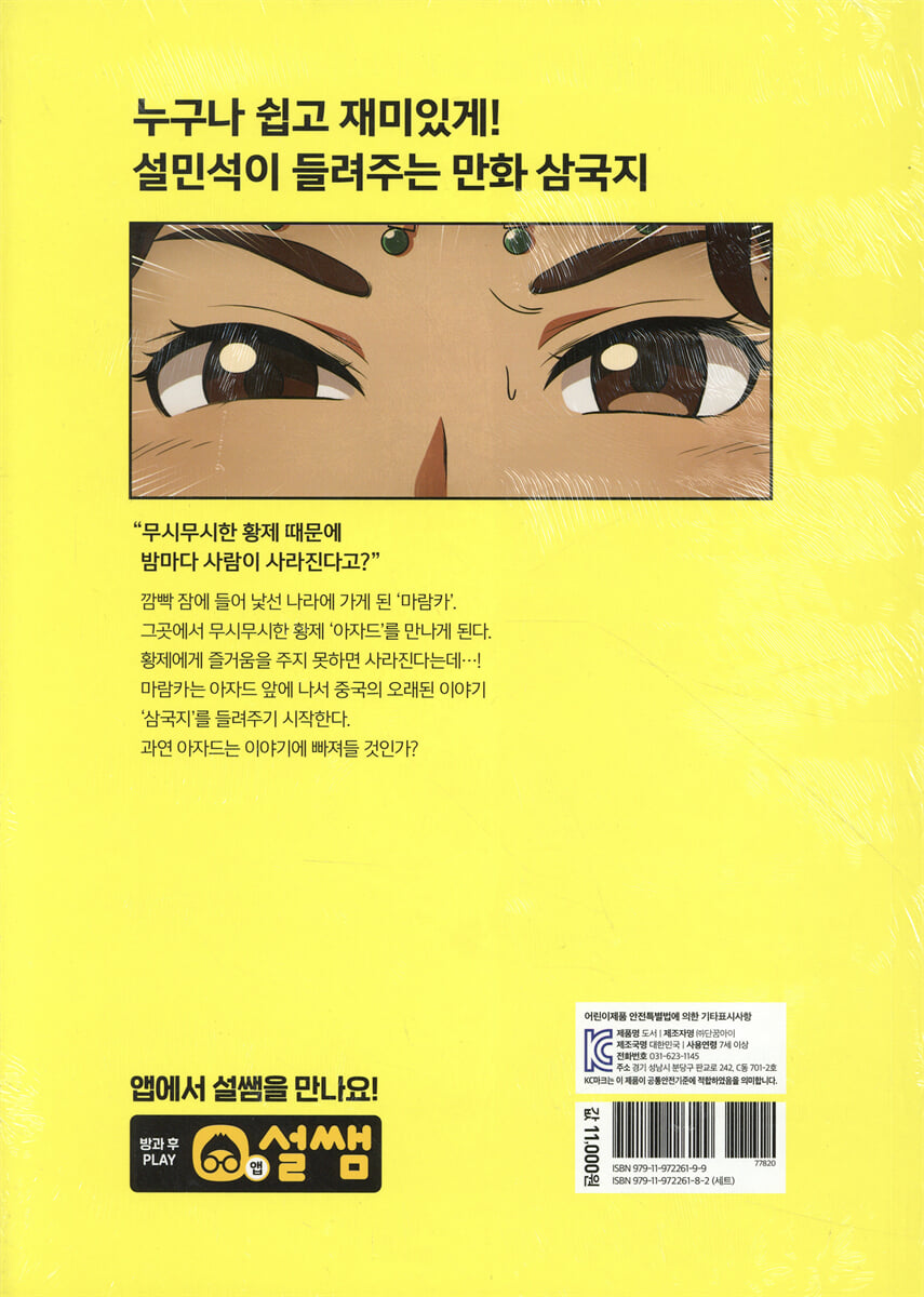 [누구나 쉽고 재미있게! 설쌤이 들려주는 만화 삼국지] 천일야화식 구성과 생동감 넘치는 웹툰 스타일로 재탄생한 새로운 삼국지. 아이들은 물론 청소년도 읽을 수 있는 구성이다. 만화와 삼국지연의, 정사 삼국지와 어떤 점이 다른지도 콕 짚어주어, 역사와 판타지를 자유롭게 넘나들며 즐길 수 있도록 구성했다. - 어린이MD 김현기