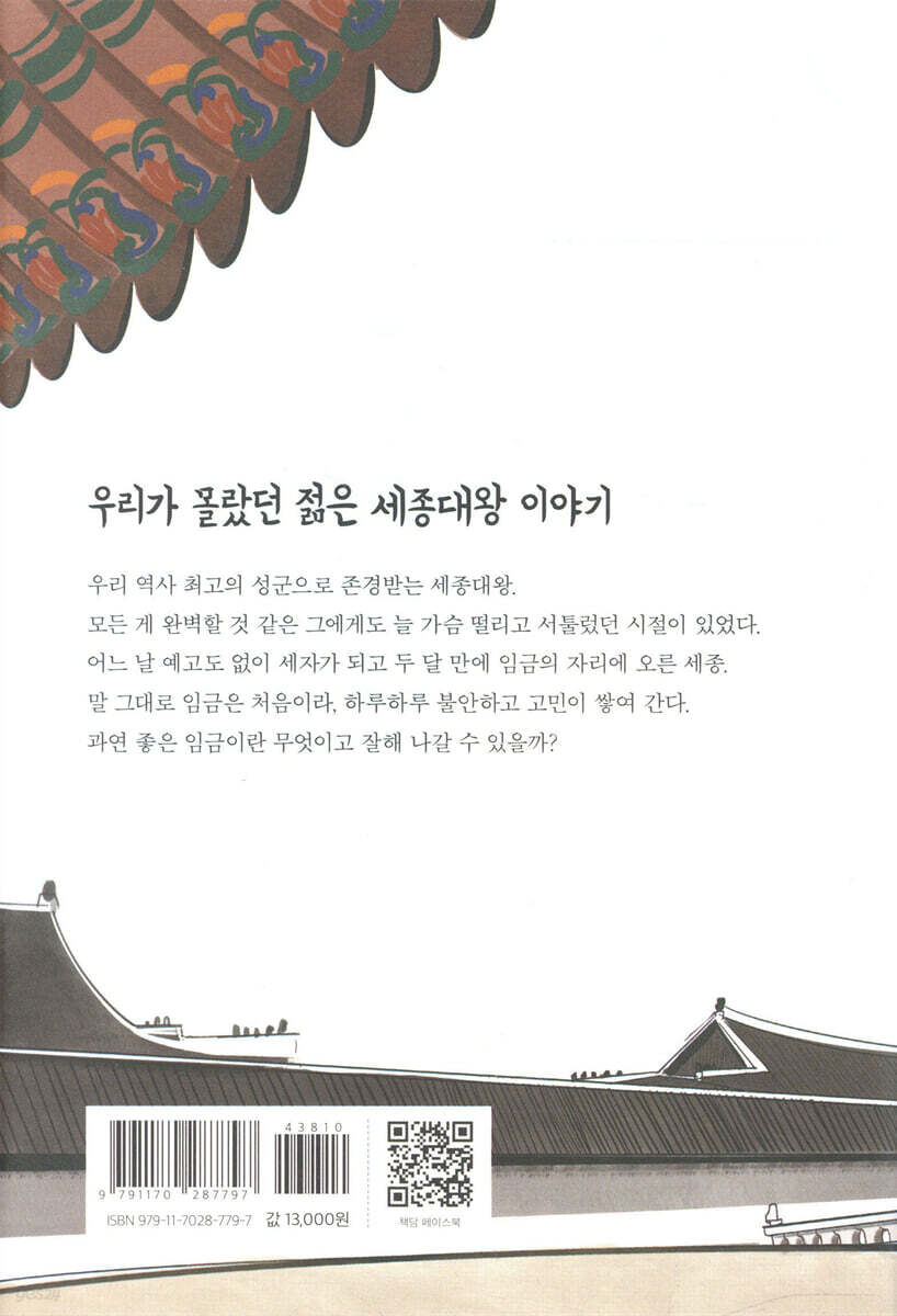 형 양녕대군이 세자에서 폐위되고 세자가 되었다가 두 달 만에 왕위에 오른 세종. 충분한 준비 없이 왕위에 오른 그는 하루하루 가슴 떨리고 불안한 나날을 보낸다. 세종 1년 봄날의 어느 밤, 세종은 여느 때처럼 상왕의 방에 무릎 꿇고 앉아 나라와 백성에 대해 가르침을 받는다. 강한 카리스마로 신하들을 휘어잡고 지혜롭게 나라를 다스렸던 아버지 태종 앞에서 세종은 자신이 한없이 작게만 느껴진다. ‘과연 좋은 임금이란 무엇이고 잘해 나갈 수 있을까?’ 스물셋 젊은 임금 세종은 매일 새로운 문제와 선택의 기로에 고민하며 한 발 한 발 앞으로 나아간다.